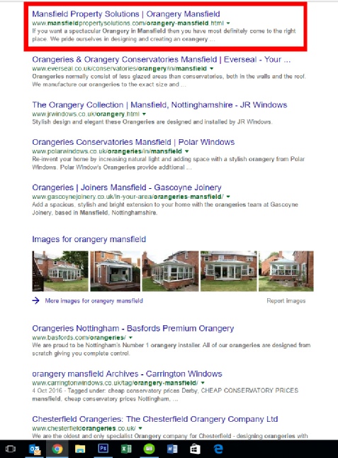 Wow what a hit this site was. Showing a professional theme the site has exceeded all expectations Google rankings and at the time of writing currently list a number of keywords in position one on google for organic search results - not just page one - but position one on page one! One such term is “Orangery Mansfield” which sees the site ahead of such companies as Everseal and Polar Windows - companies which no doubt spend thousands on search engine optimisation. A real achievement here for us at Animal and great to know what can be done with a little creativity.