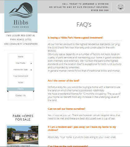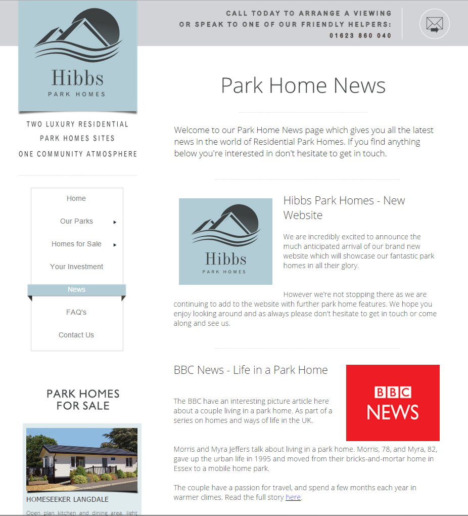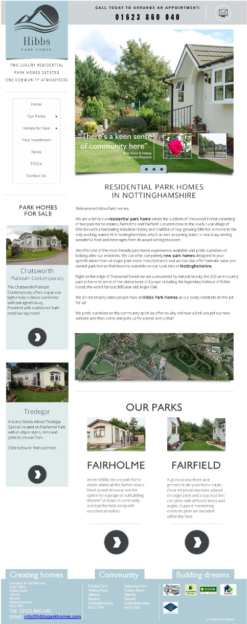 The site was built completely from the ground up to help promote two beautiful rural park homes estates in Nottinghamshire.